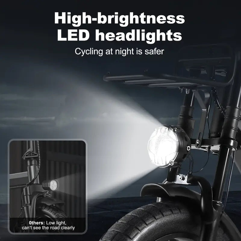20” x 4.0” Fat Tires – Handle sand, snow, gravel, and dirt with maximum stability and grip.